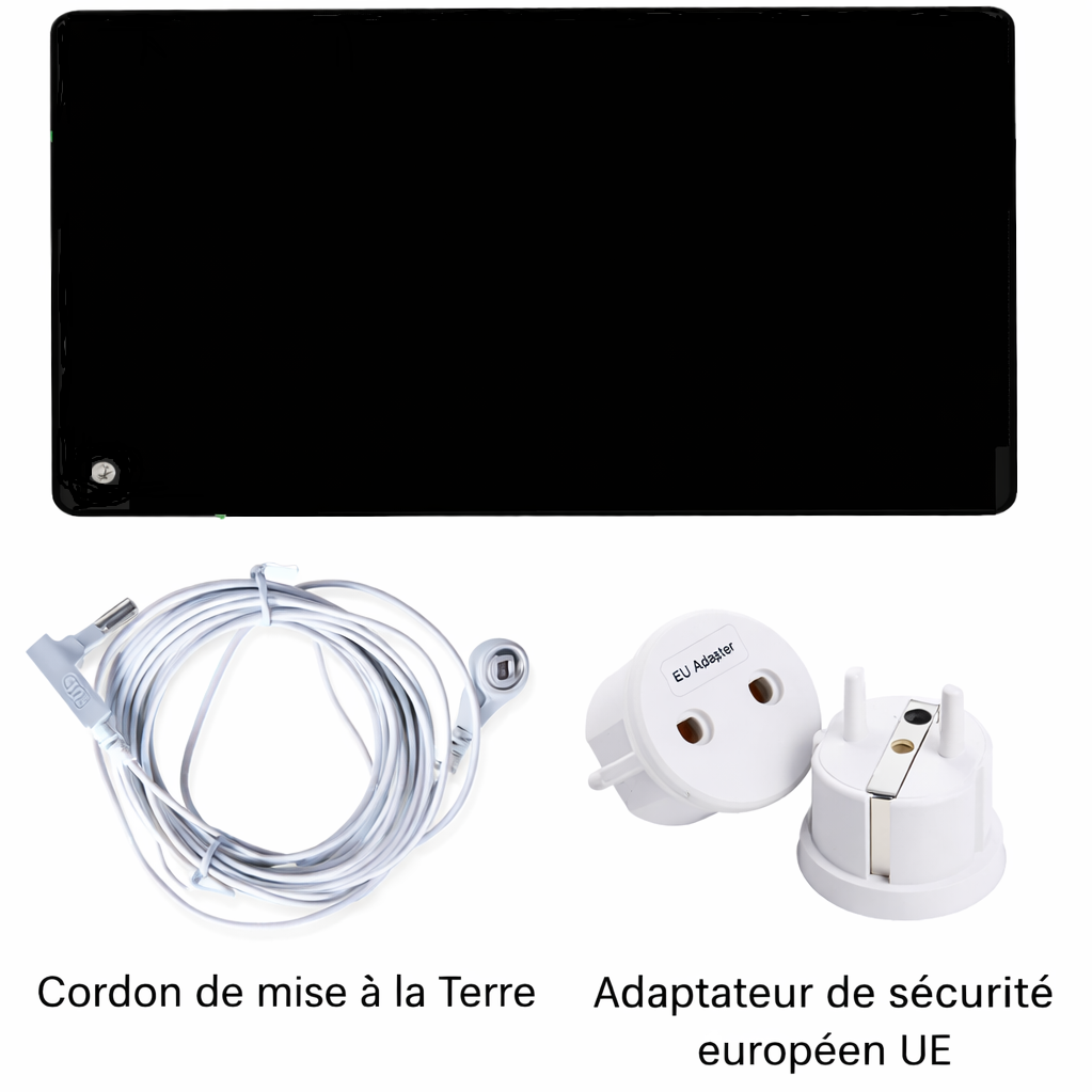 Le tapis peut être utilisé sous vos pieds lorsque vous travaillez au bureau ou à la maison, sur votre lit, soit sous les draps, soit directement sous vos pieds, pendant la méditation ou le yoga, ou encore devant le canapé ou à votre poste de travail. Il suffit de le brancher sur une prise de courant reliée à la terre (vérifiez avec un testeur si nécessaire). Le tapis doit être posé à plat sur une surface sèche. Ensuite, entrez en contact direct avec votre peau sur le tapis. Pour qu’un tapis de mise à la terre fonctionne correctement, il doit être branché sur une prise de courant reliée à la terre : cette connexion à la Terre permet le transfert d’électrons du sol vers le corps. Sans mise à la terre, le tapis ne peut pas remplir sa fonction et les bénéfices attendus ne seront pas obtenus. Avant de l’utiliser, assurez-vous donc que votre prise est correctement mise à la terre.